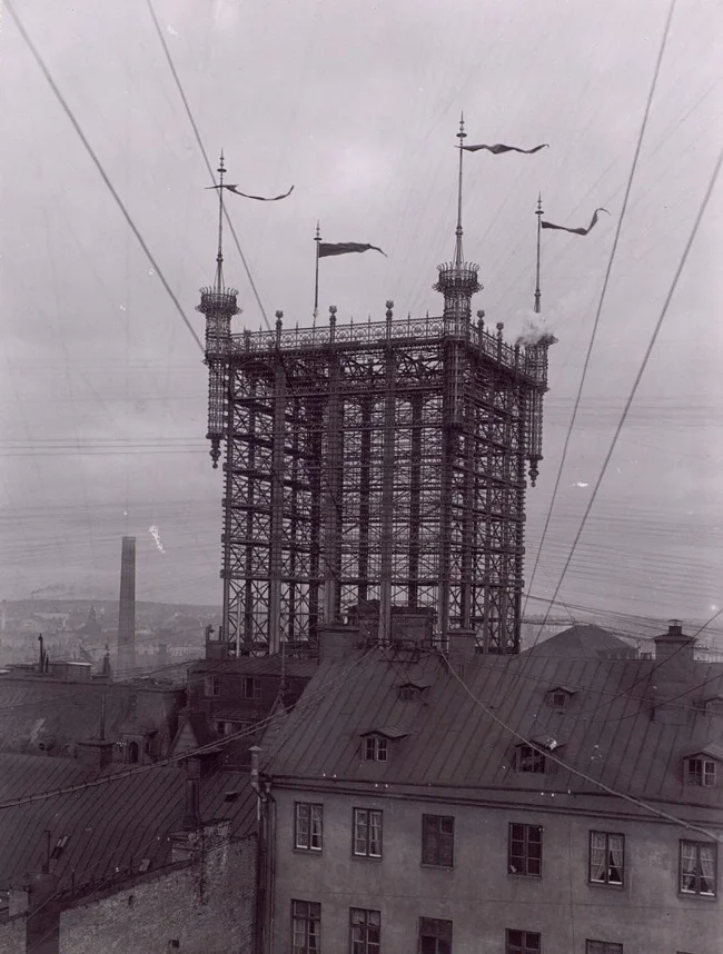 Культовая Телефонная башня, или Telefontornet, распахнула свои металлические объятия в 1887 году. К ней сходилось более 5500 телефонных линий общей протяжённостью около 5 тысяч километров. Как хорошо видно на старых фотографиях, это был форменный кошмар: провода торчали во все стороны, и вся эта система была чудовищно уязвима для ветра, снега и дождя. Местные жители башню люто ненавидели, считали её уродливой и даже жаловались, что она загораживает солнце.