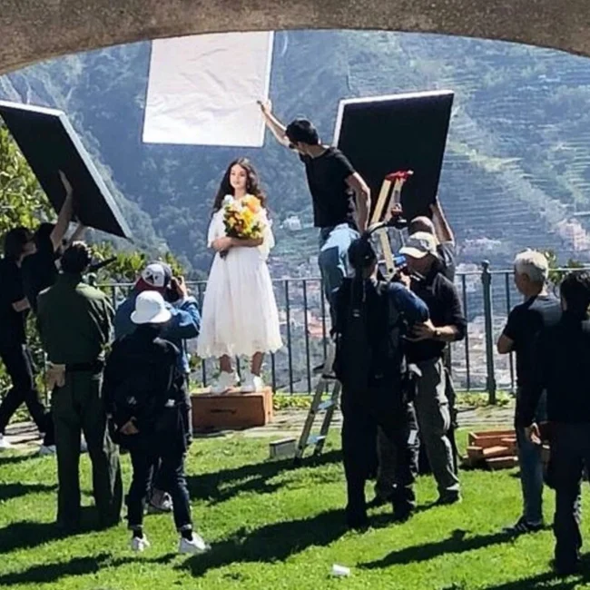 Пока что фотографии с этой съемки еще не доступны для просмотра широкой публике, но проворным журналистам удалось раздобыть несколько кадров.