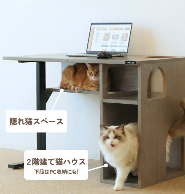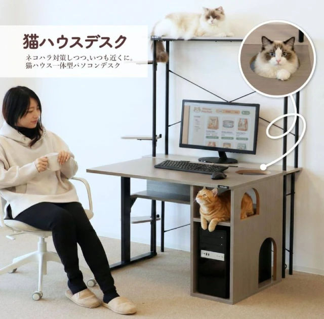 В Японии появился необычный компьютерный стол, созданный специально для владельцев кошек. В конструкцию встроен полноценный «домик» для питомца с несколькими зонами: местами для отдыха, игры и укромными нишами. Над системным блоком расположена тёплая полка, где кошка может спать, используя тепло работающего компьютера. Стоимость такого рабочего места для любителей животных составляет около 140 долларов