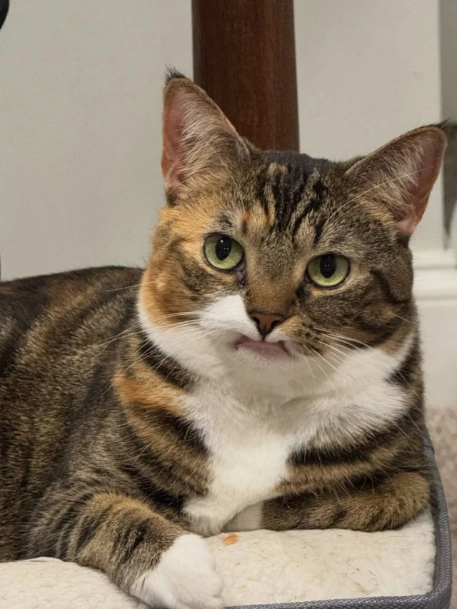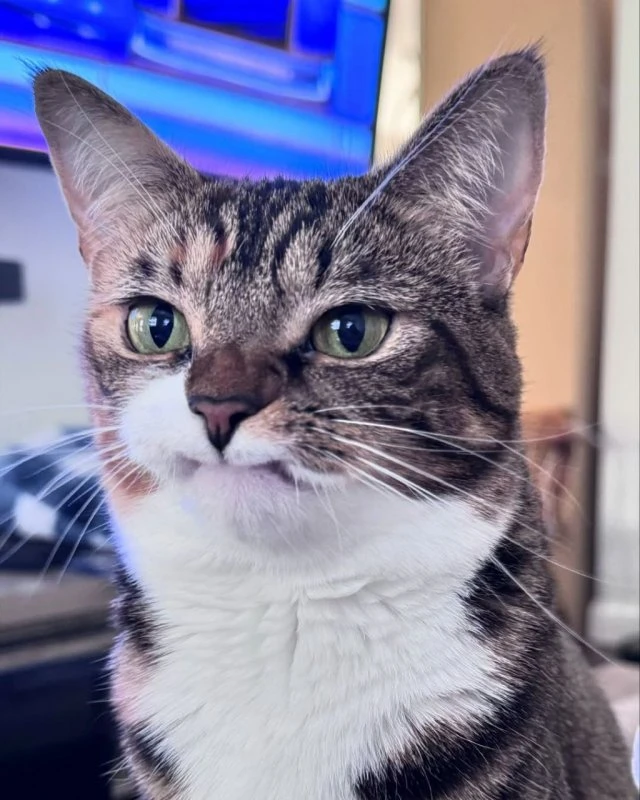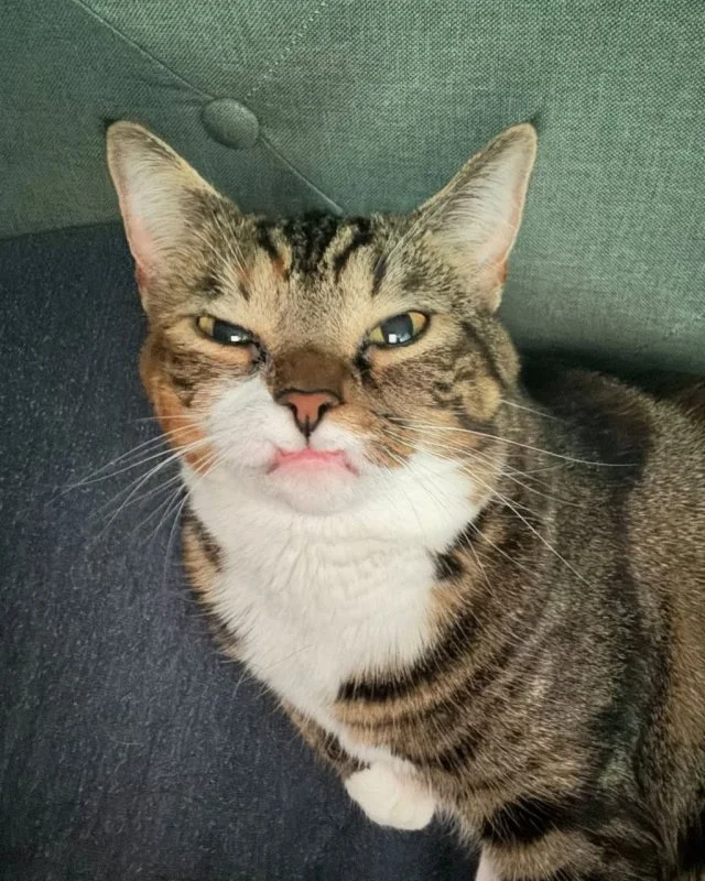 У этого кота по кличке Прелесть отсутствуют два верхних клыка, поэтому он стал популярным в интернете из-за своей недовольной мордочки.