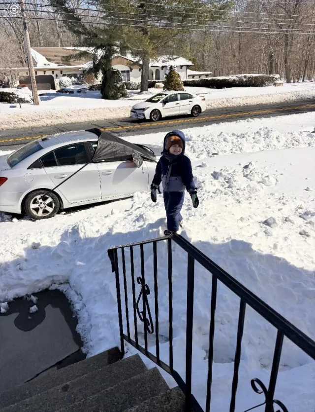 10. Малыш гуляет по снегу или балансирует на перилах?