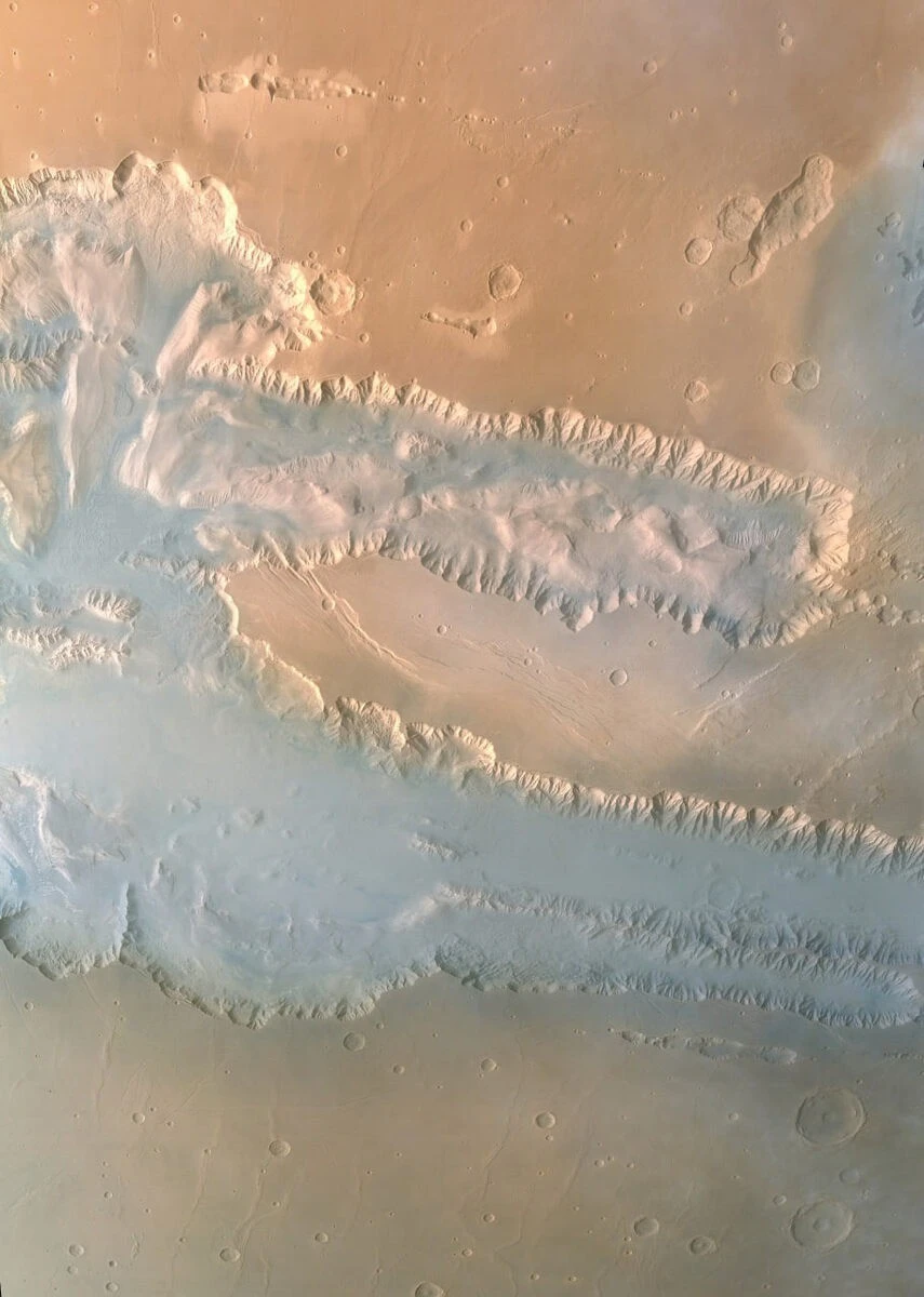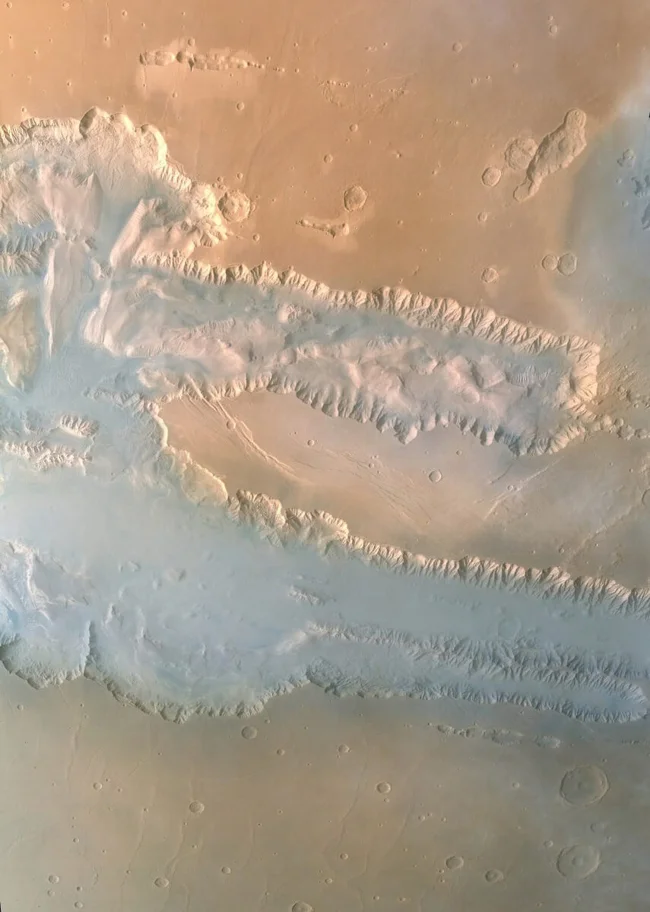 Долины Маринера простираются более чем на 4 000 километров — почти четверть окружности Красной планеты — и достигают глубины около 11 километров. Для сравнения: Большой каньон в США в 10 раз короче и почти в 5 раз мельче. Если бы эта структура находилась на Земле, то она протянулась бы от Москвы до Ташкента.