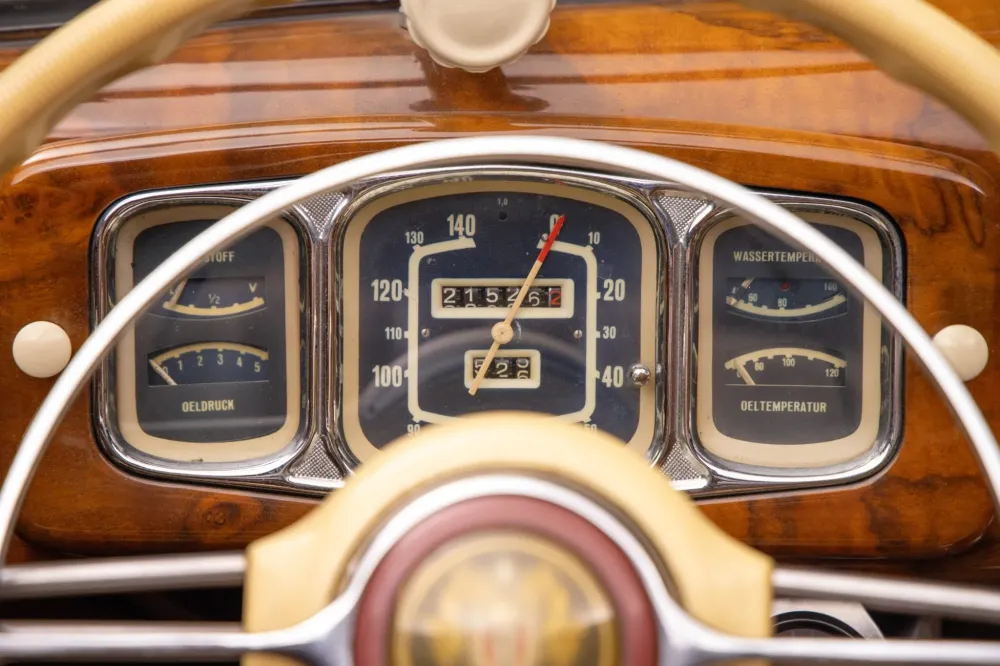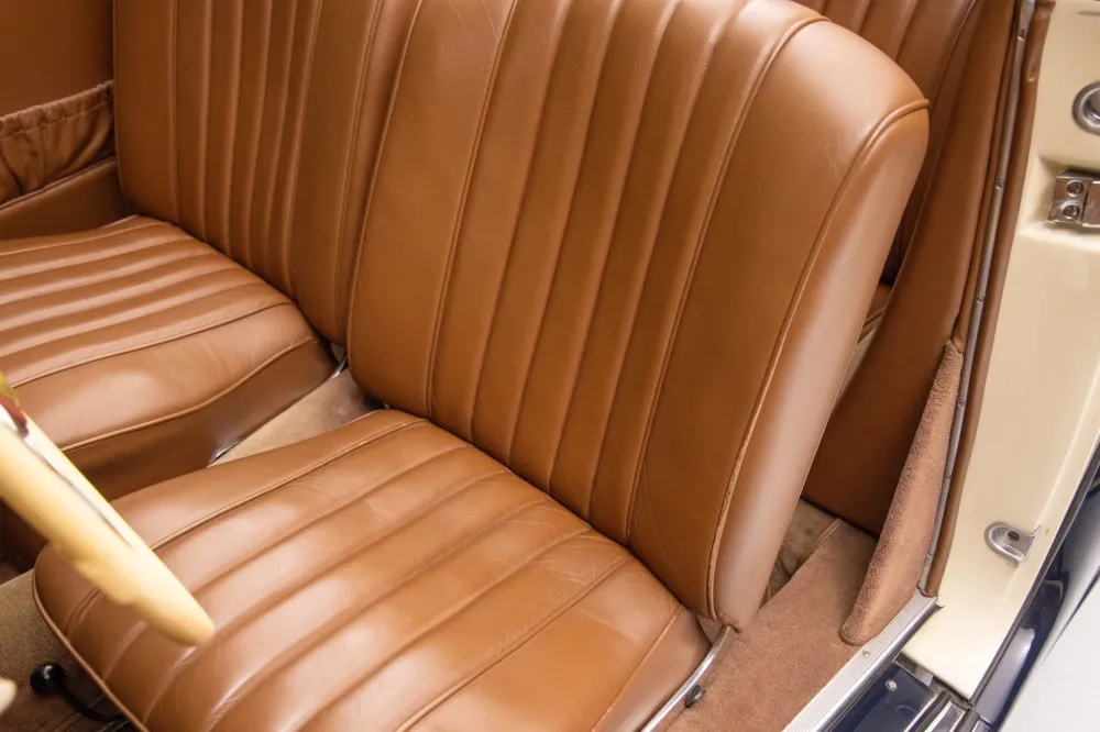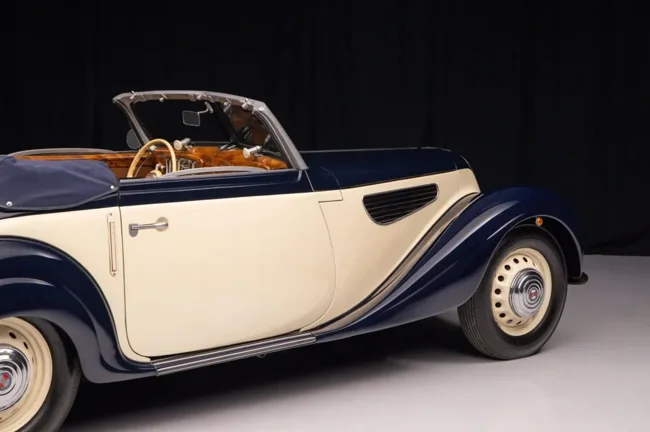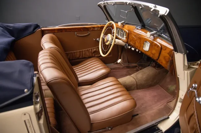 Раритет оснащён рядной «шестёркой» объёмом 2,0 литра с двумя карбюраторами Solex мощностью около 55 л.с., которая работает в паре с четырёхступенчатой «механикой». Пробег кабриолета составляет 21,5 тысячи километров, однако продавец не уточняет, с какого момента он отсчитывается.