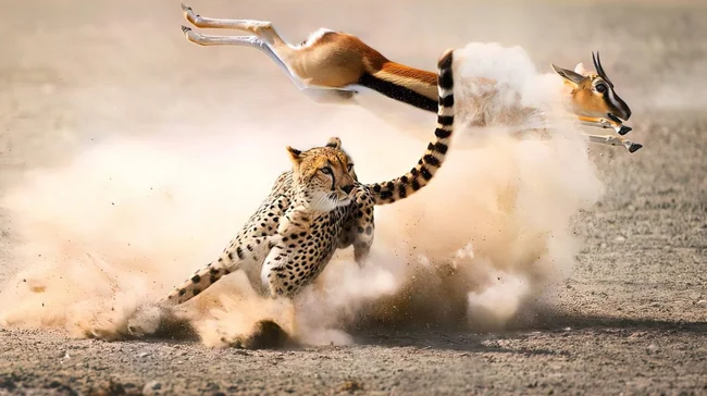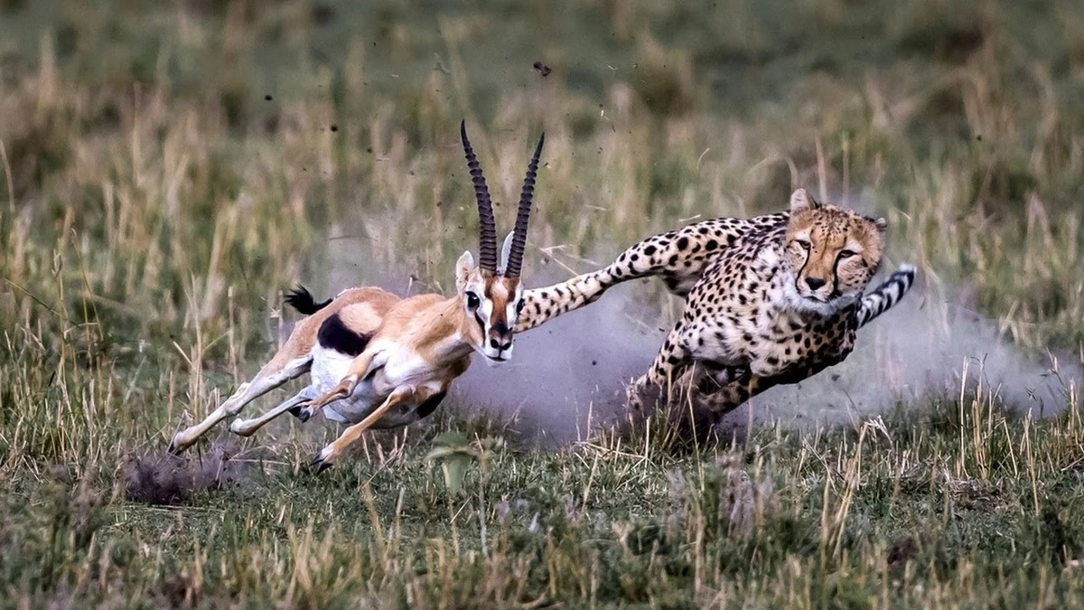 Тактика охоты гепардов отточена до мельчайших деталей: максимально приблизиться, начать погоню, сделать подножку, задушить упавшую жертву. Эволюционировав как спринтеры, они получили ультра-облегчённую анатомию, что теперь позволяет гепардам разгоняться до 104 километров в час, но делает самого хищника крайне уязвимым. При росте в 94 сантиметра в холке гепарды весят максимум 65 килограмм. Для сравнения, другие усатые при таком же росте весят в 2, а то и в 3 раза больше. Тонкие-звонкие животины в драках очень быстро получают серьёзные ранения, а значит, рискуют умереть голодной смертью.