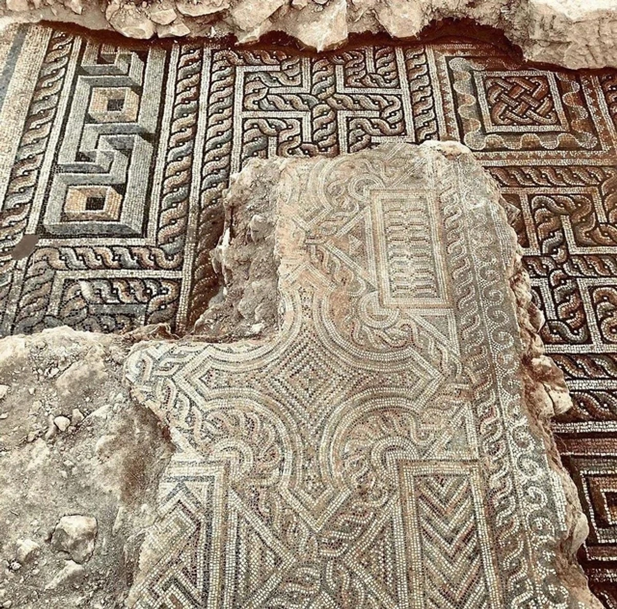 10. Древнеримская мозаика, обнаружившаяся под слоем менее древней