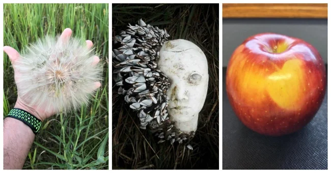Представьте, что вы спешите по своим делам, поднимаете голову, опускаете взгляд или просто заглядываете в щель и видите то, что ломает привычную картину реальности. Головку чеснока, подпирающую дверь. Улитку, рассекающую по кепке. Кусочки аметиста, затесавшиеся среди гравия, которым недавно посыпали дорожку. Или любую другую случайность, что оказалась красивее любого дизайнерского решения. На этих снимках запечатлены вещи, оказавшиеся совсем не на своих местах. Или как раз на своих, просто мы об этом не догадывались.
