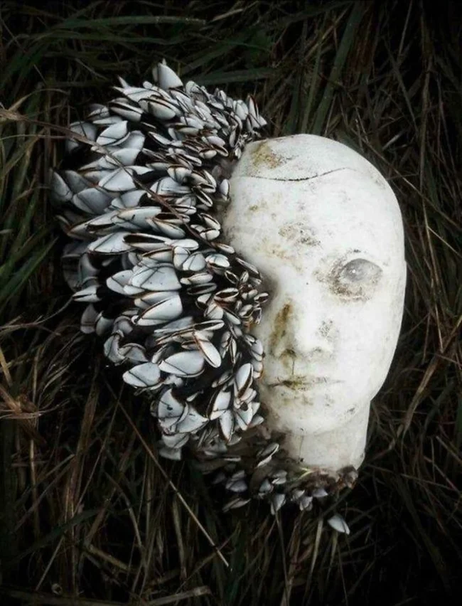 1. Моллюски облюбовали выброшенную голову манекена и создали сюрреалистичное произведение искусства