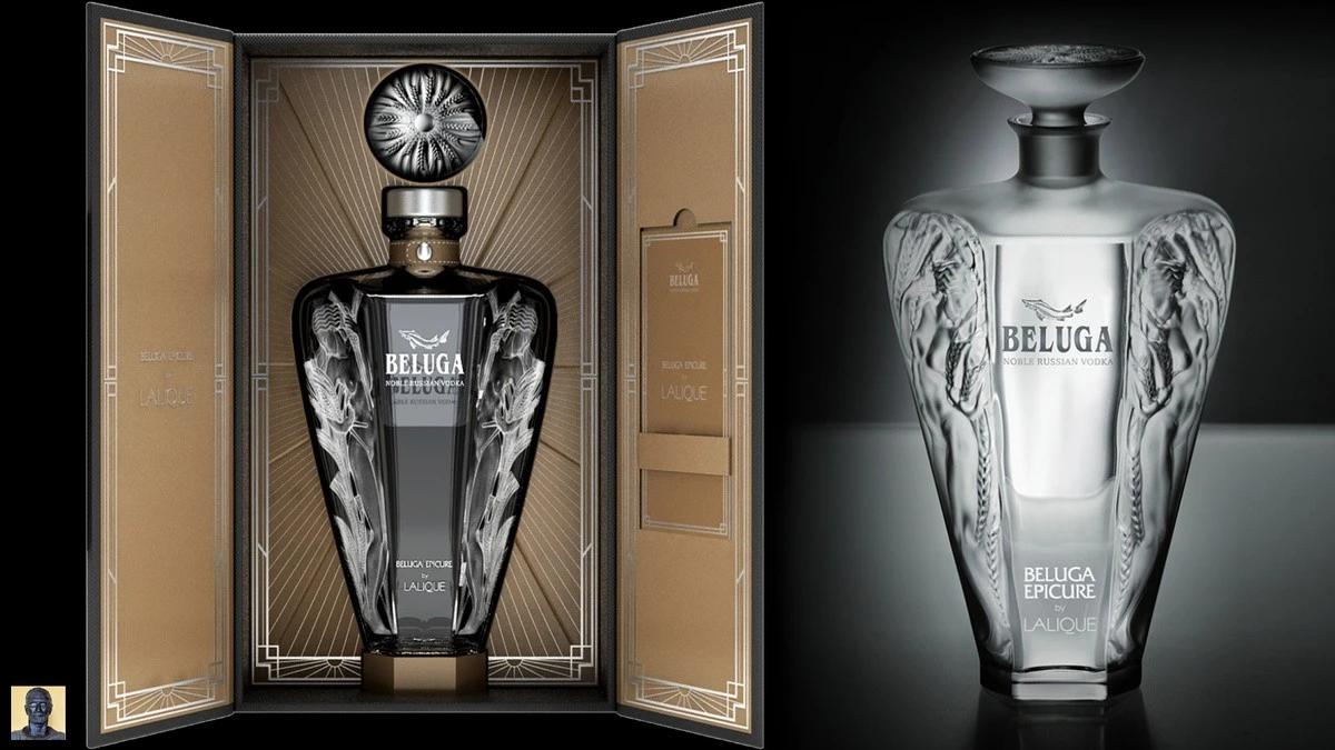 Начнем с того, что подешевле… Наша водка Beluga Epicure – совместный проект с культовым французским производителем ювелирных изделий и хрусталя из Эльзаса — домом Lalique. Декантер изготавливается вручную, после отлива хрусталя мастера-полировщики «добиваются тонкой грани между прозрачным и сатинированным стеклом, таким образом показывая монументальность и одновременно хрупкость изделия». На дне каждой из 1000 бутылок — гравировка порядкового индивидуального номера. Водка создана с использованием особого солодового спирта на основе пшеницы. На Западе стоит – 9 999,99$.
