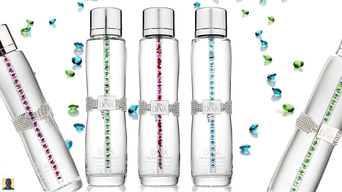 Английская водка Diva от Blackwood Distillers позиционируется как «самая гламурная водка в мире» и купить ее можно по той же гламурной цене за 1 $ миллион. Помимо кристально чистой водки, каждая из элегантно изогнутых бутылок содержит уникальное сочетание камней, отобранных вручную: розовый тумалин, цитрин, дымчатый топаз, перидот и цирконий.
