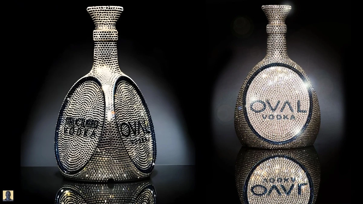 Начнем с того, что подешевле… Кристаллы могут сделать красивым что угодно и конечно же дорогим. Водка OVAL Swarovski Crystal Vodka (ограниченного выпуска) выглядит гламурно изо всех своих сил так как украшена более чем 7000 ослепительных кристаллов Swarovski. Внешний вид разработан известной дизайн-студией Lucy.D и выполнена в форме тетраэдра. Стоит она около 7 000$ (точнее 6 922$). Сама же водка «имеет ультрагладкую текстуру и обладает гармоничным, мягким вкусом и тонким ароматом». Она доступна для покупки в эксклюзивных ночных клубах Лондона, таких как Embassy, Dolce, Amika, Maya, Tramp, Maddox и Chinawhite.