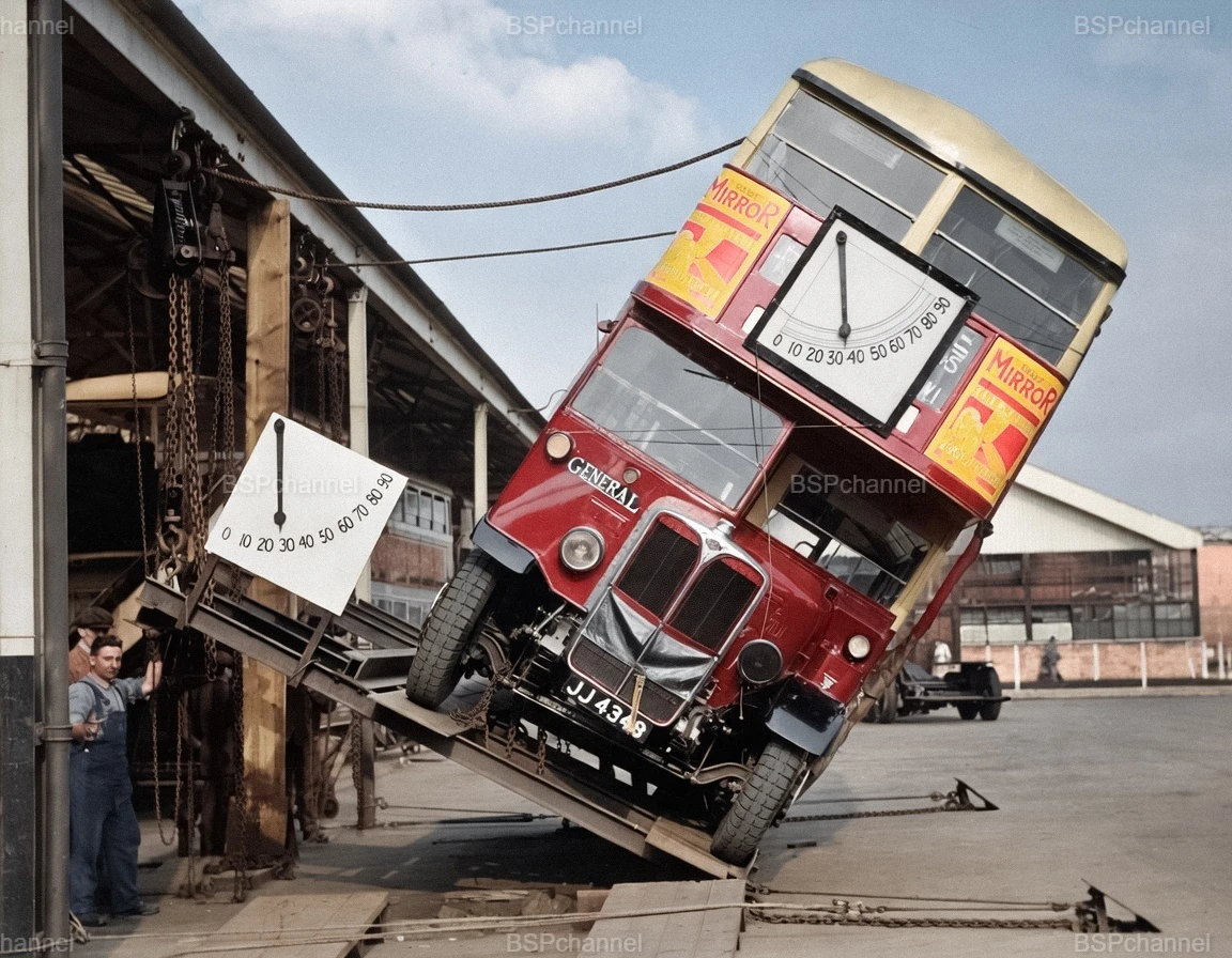 Двухэтажные автобусы появились ещё в середине XIX века, но их высота создавала серьёзную проблему — высокий центр тяжести делал машины неустойчивыми. В Париже после нескольких аварий в 1910-1911 годах от эксплуатации «империалов» (так называли верхние этажи) и вовсе отказались. Лондон пошёл другим путём: вместо запрета здесь решили сделать упор на инженерную безопасность. Ключевым фактором стало внедрение пневматических шин 1920-х годах, это улучшило сцепление с дорогой. Но главным нововведением стали регулярные тесты на наклон, ставшие обязательным условием для получения лицензии. Автобусы устанавливали на специальную наклонную платформу. Инженеры начали постепенно поднимать один бок машины. Автобус наклоняли до угла в 28 градусов, именно таков был тогда норматив безопасности. Несмотря на пугающий угол, автобус не опрокидывался.