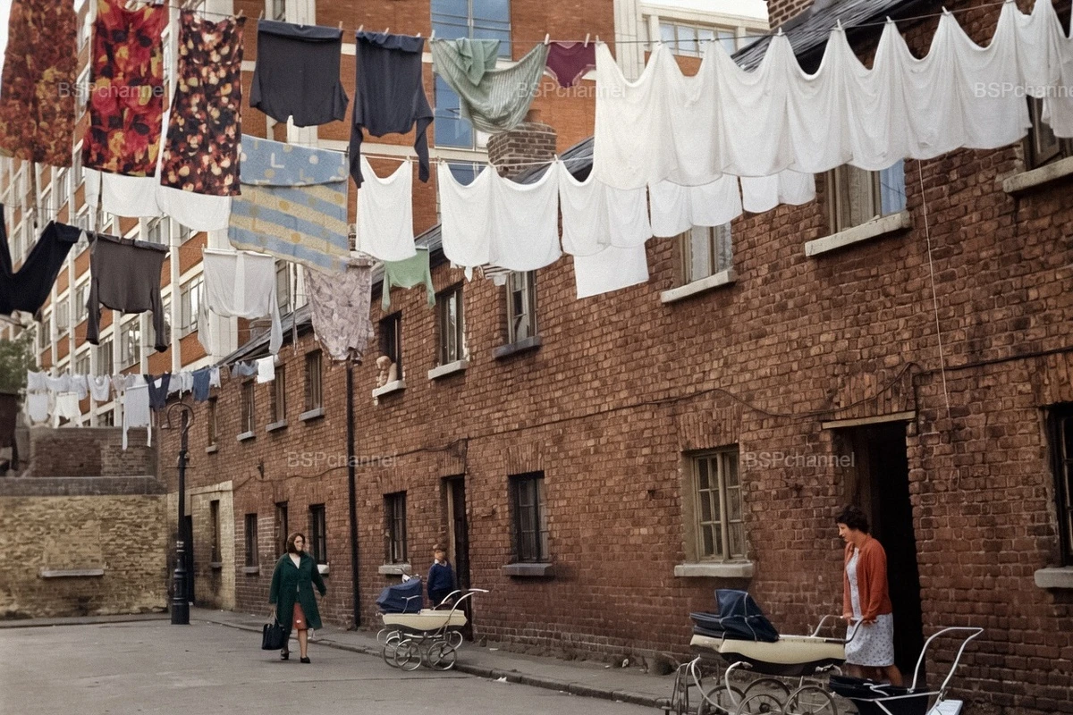 К началу 1960-х годов в Англии оставалось около 600 000 трущоб. В 1961 году 18% домохозяйств в Большом Лондоне разделяли туалет с другими семьями. Многие семьи жили в перенаселённых, антисанитарных условиях без базовых удобств. Условия жизни были ужасными, семьи спали при включённом свете, чтобы отпугивать крыс, матери готовили на открытом огне, отсутствовало центральное отопление, горячая вода.