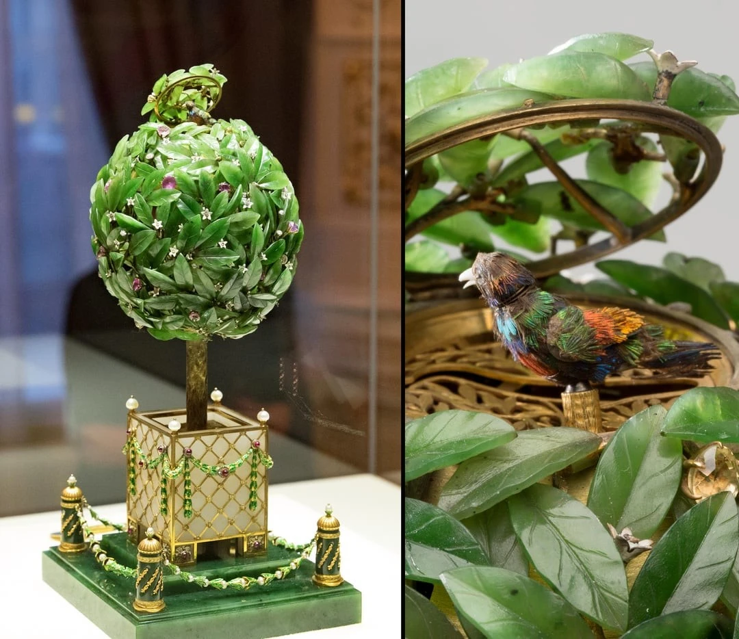 3. «Лавровое дерево» - яйцо Фаберже, украшенное нефритом и драгоценными камнями, с маленькой птичкой внутри