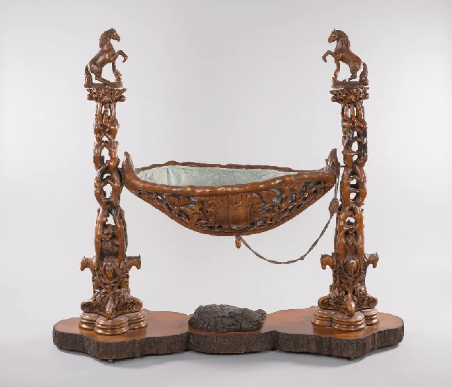 16. Колыбель из дуба для ребёнка Сэмюэля Кольта, спроектированная Исааком Стюартом, изготовлена Джоном Мостом, Хартфорд, Коннектикут, 1857 год