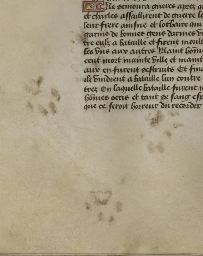 6. Чернильные отпечатки кошачьих лап на фламандской рукописи XV века