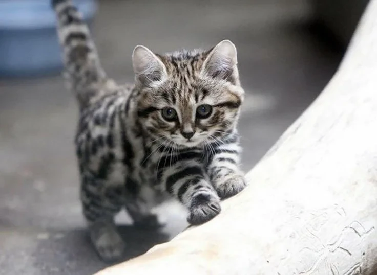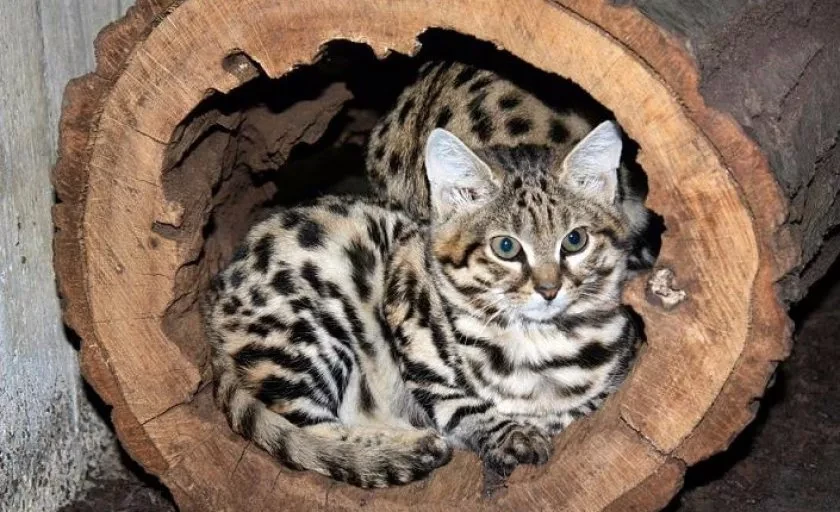 Черноногая кошка - самая маленькая дикая кошка Африки. Самцы весят в среднем 1,9 кг, самки - около 1,3 кг. Длина тела от 35 до 52 сантиметров. Снаружи - симпатичное рыжевато-песочное существо с тёмными пятнами, чем-то напоминающее домашнюю кошку породы бенгал. Только дикое. Совсем дикое.