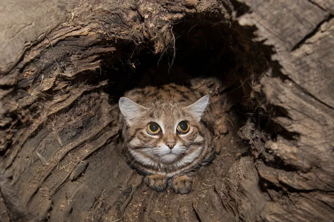 Другой примечательный случай - с маскировкой. Исследователь Люк Хантер осветил кошку фонарём ночью. Вместо того чтобы убежать, она мгновенно прижалась к земле и замерла. Хантер на секунду отвёл взгляд - и найти её снова практически не смог. Пятнистый окрас на фоне сухой травы и камней делает её буквально невидимой.
