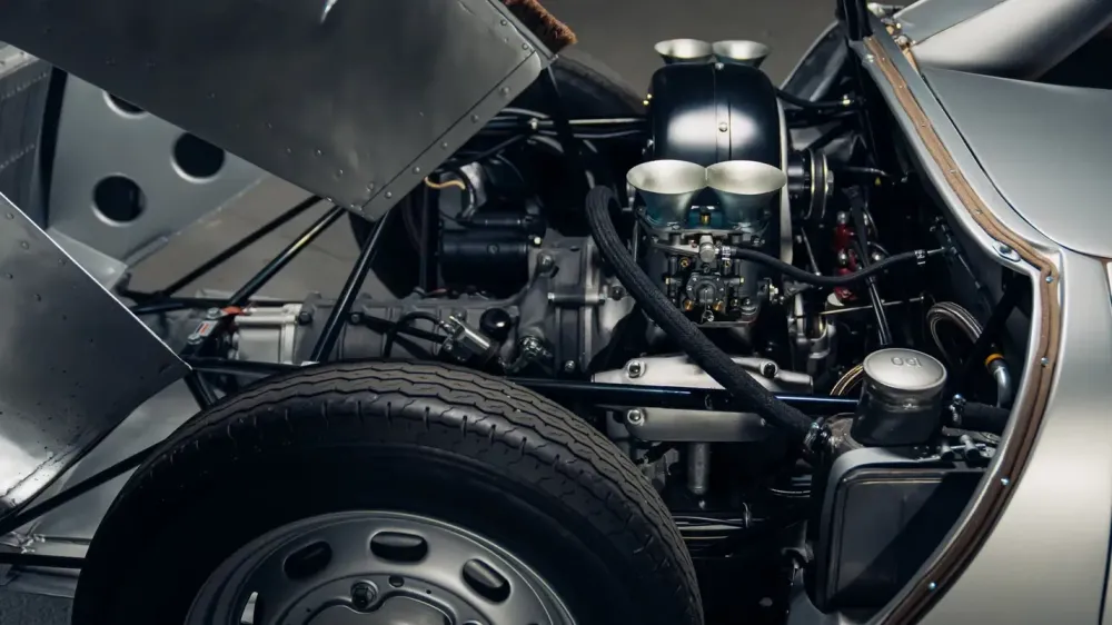 У этого Porsche есть одна уникальная особенность, которая отличает его от 39 других выпущенных экземпляров. В оригинале доступ к двигателю осуществлялся через боковые панели с жалюзи. Однако в начале гоночной карьеры машине сильно помяли заднюю часть кузова. При ремонте применили решение от модели RS 550 Spyder с откидной задней частью кузова.