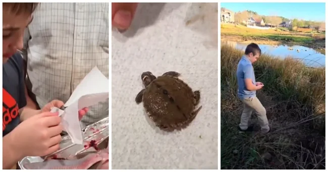 Супруги не хотели сразу отпускать черепашонка на волю. Они думали, что он находится в шоковом состоянии, поэтому особенно уязвим. Только через некоторое время Эндрю взял Иону и выпустил его в водоем. Мальчик признался, что гордится необычным уловом.