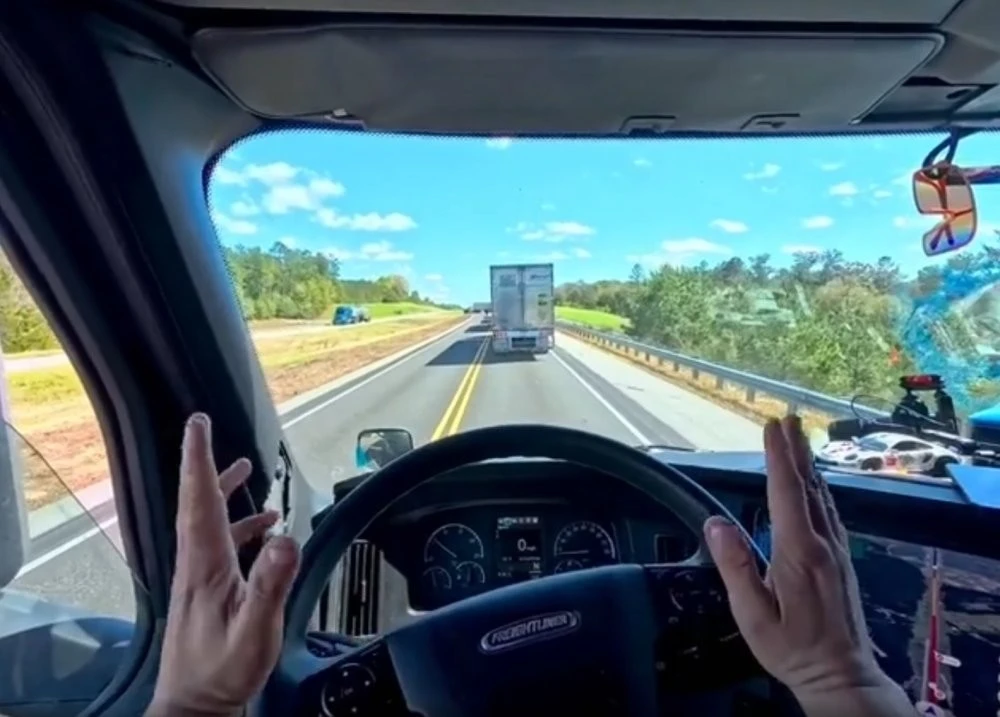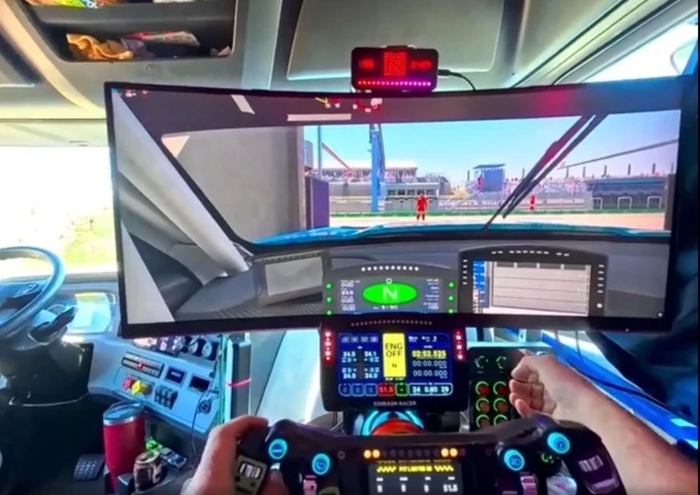 Дальнобойщик установил в кабину дорогой ПК с рулём, чтобы играть в гонки в пробках (5 фото)