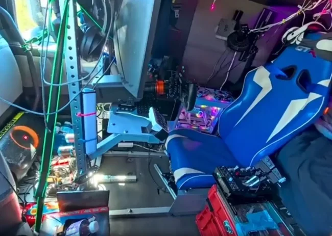Пользователь Reddit под ником ZanaZamora отличился своим необычным игровым сетапом. Он работает дальнобойщиком, но на дороге ему приходится часами стоять в пробках. Чтобы не скучать, геймер придумал необычное решение: он установил ПК для пассажирского сиденья.