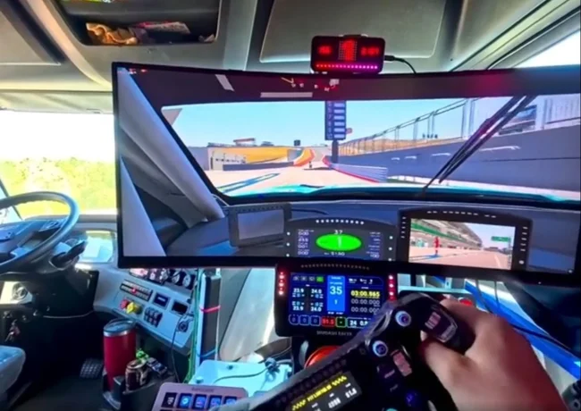 При этом он решил пойти дальше и сделать целый гоночный сетап: со вторым сиденьем, рулём, педалями, интерактивными кнопками и большим изогнутым монитором для полного погружения. Как признался ZanaZamora, он переключается на виртуальные гонки, когда на дороге образуется слишком длинная пробка.