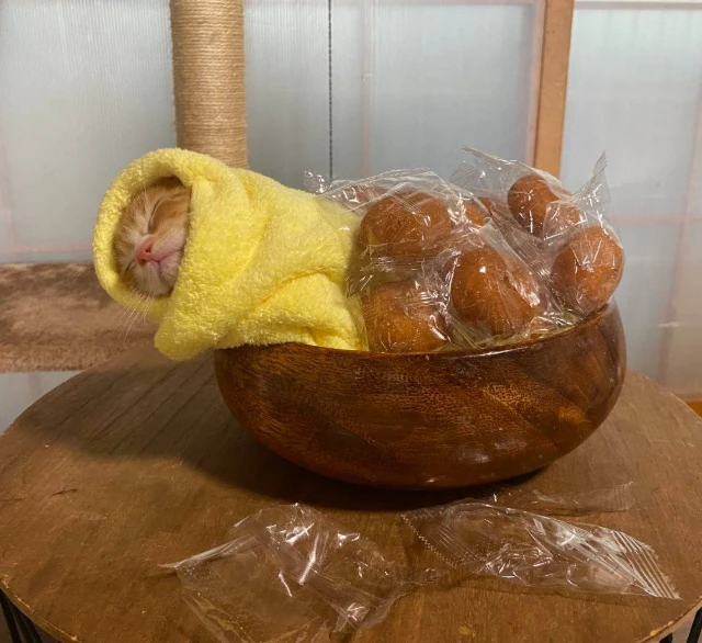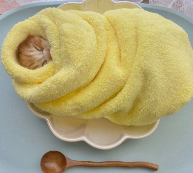 В интернете распространяется информация о необычной японской традиции, связанной со спасёнными котятами. Согласно этим описаниям, животное якобы укладывают в импровизированную «постель» из омлета с рисом, завернутую в жёлтое полотенце. Такой ритуал называют символом здоровья и жизненной силы. Также утверждается, что он должен защищать котёнка от болезней и негативного влияния.
