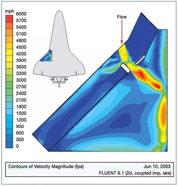 Позже Следственная комиссия по аварии «Колумбии» выяснила, что причиной гибели корабля стали те злополучные куски пены, которые оторвались от бака и ударили по крылу. В результате удара с передней кромки крыла отлетели термостойкие плитки, образовав пробоину в теплозащите размером не менее 15х20 см. Через неё разогретый при спуске до гигантской температуры воздух проник внутрь левого крыла, затем в среднюю часть фюзеляжа и к левому колесу основной стойки шасси. Колесо взорвалось, а горячий газ стал буквально прожигать алюминиевую конструкцию крыла...