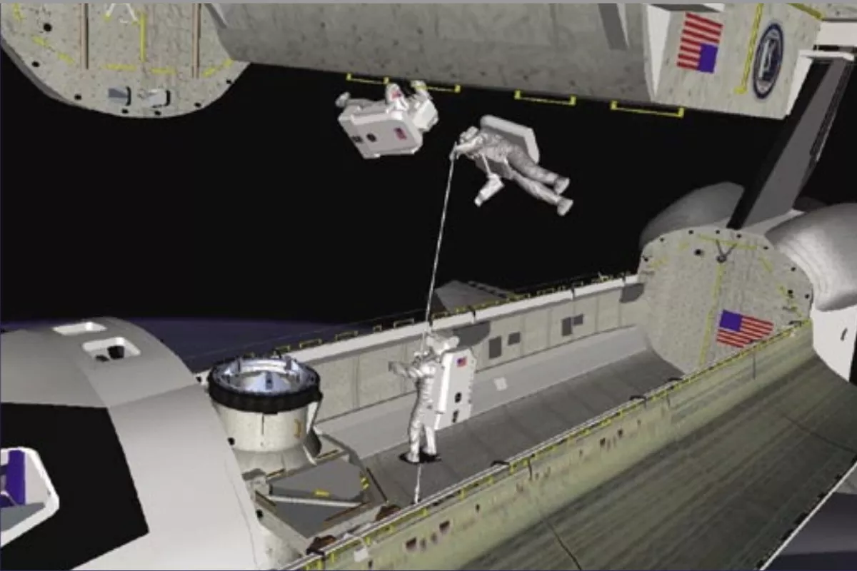 Моделирование эвакуации экипажа «Колумбии» на борт космического корабля «Атлантис». Фото: Иллюстрация из отчета Следственной комиссии по аварии «Колумбии».