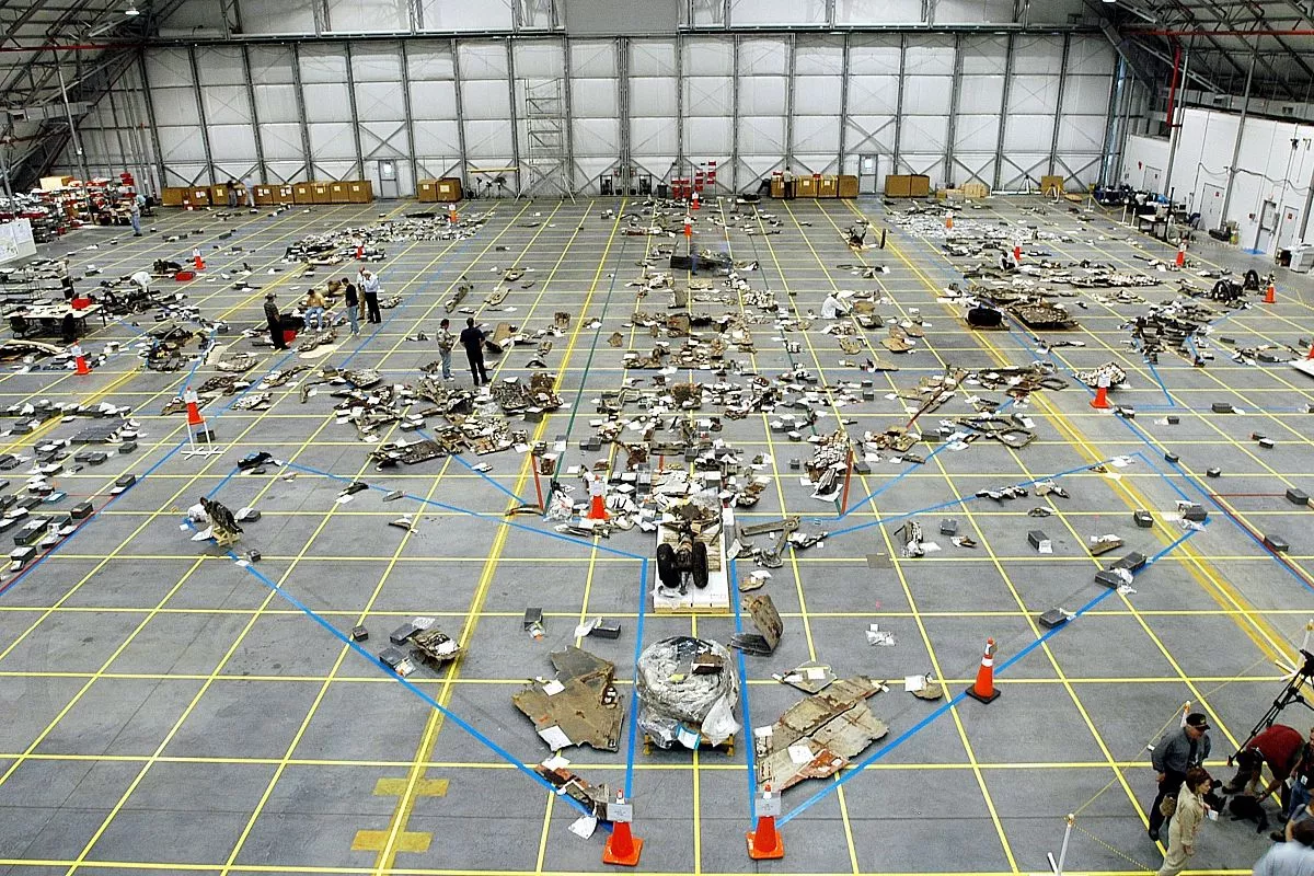 Собранные обломки шаттла. Фото: NASA, Public domain, via Wikimedia Commons