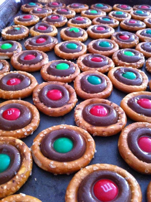 Драже M& M поверх расплавленных в бубликах конфеток Hershey