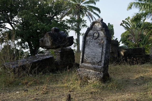 Жестокие тропические ливни веками смывали надписи с надгробий, но на некоторых из трех десятков плит все еще можно прочитать имена, прозвища, даты. ![]()