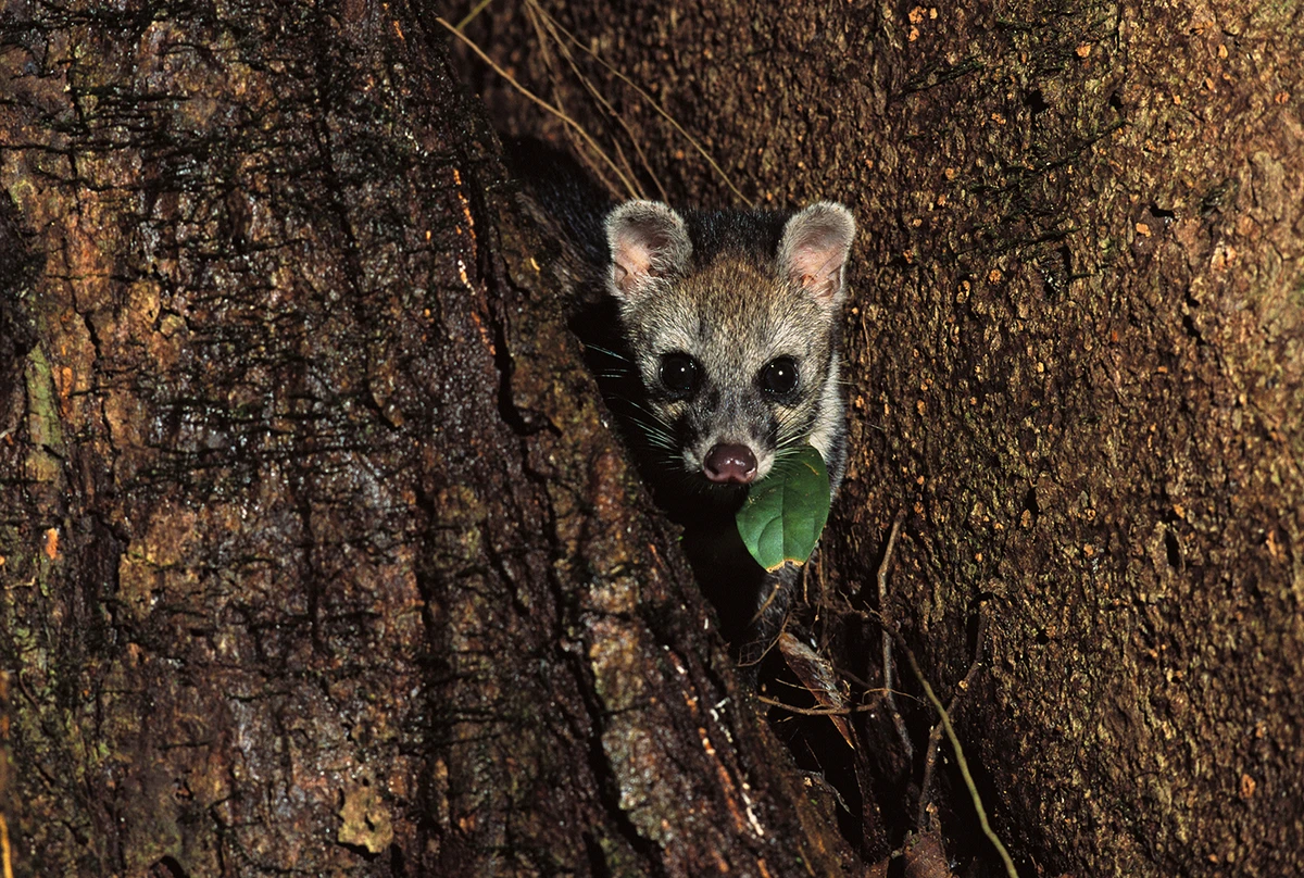 Циветты — это дальняя родня гиен и кошек, вместе с ними входящая в подотряд кошкообразных. Поэтому в них и правда есть что-то кошачье: это очень гибкие и ловкие животные с отличным нюхом и длинным крепким хвостом, который резко бьёт из стороны в сторону, когда тангалунга злится.