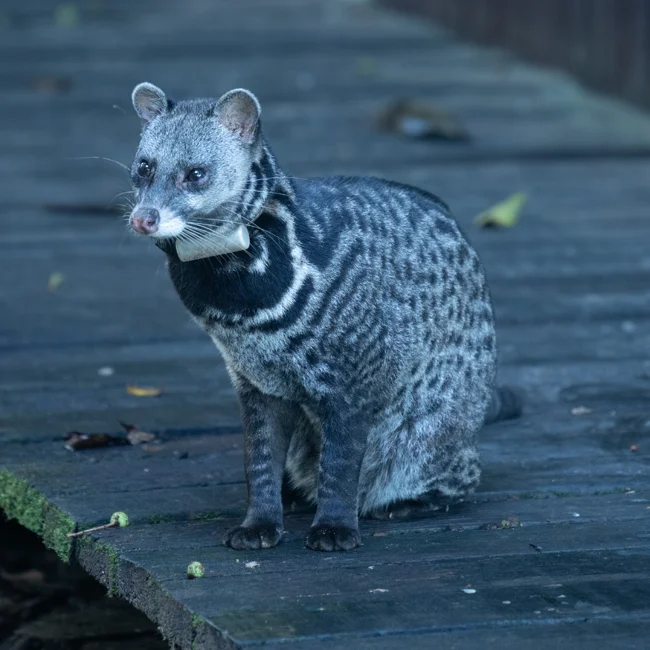 Циветты из заповедников часто носят на шеях GPS-трекеры в качестве модных акссесуаров.
