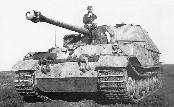 Вместе с тем, статистика применения данных САУ говорила о том, что машины, имевшие боевую массу 70 тонн, воевали не без проблем. Например, по состоянию на 26 августа 1943 года из 50 САУ в боеготовности было всего 12. В дальнейшем число боеспособных машин редко превышало 10 САУ. Имелись случаи, когда машины сгорали на марше. Может показаться, что это проблема шасси. Но нет, это проблема перегрузки шасси. И, справедливости ради, стоит отметить, что детище Porsche с издевательствами, которые проводились над ним, справилось более-менее достойно. Из Pz.Kpfw.Tiger Ausf E. ничего подобного бы не получилось.