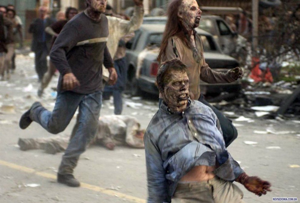 1. Джордж А. Ромеро увековечил образ зомби в своем фильме 1968 года «Ночь живых мертвецов» и не раз возвращался к этой теме в многочисленных сиквелах, включая фильм 2004 года «Рассвет мертвецов», кадр из которого вы видите на фото. Прозванный «дедушкой зомби», Ромеро создал и популяризировал многие моменты, которые зрители ассоциируют с зомби. Например поедание мозгов, странная пошатывающаяся походка и разлагающаяся плоть. Кстати: в «роли» крови в первой части «Ночь живых мертвецов» выступил шоколадный сироп «Bosco». (Universal Pictures)
