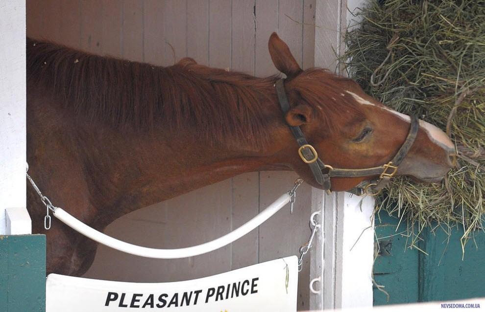 8. Pleasant Prince ест сено в конюшне после тренировок. 12 мая 2010 года. (Gene Sweeney Jr./Baltimore Sun/MCT)(MCT)