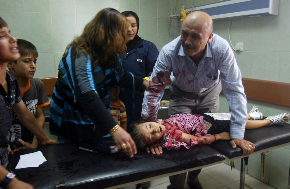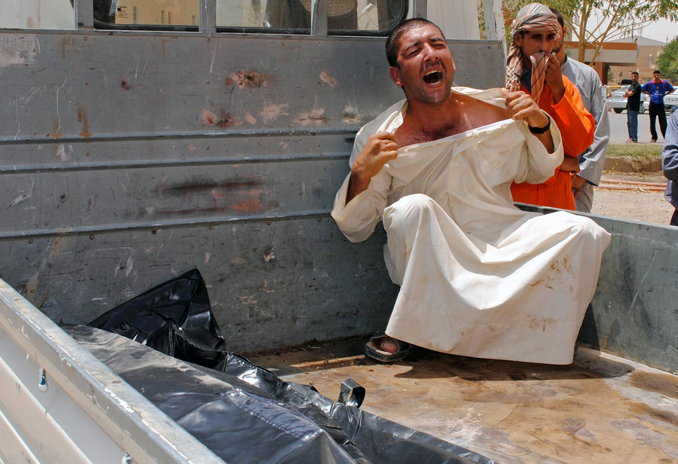 29. 20-летний Салим Валид скорбит о своем младшем брате, 15-летнем Али Валиде, погибшем в результате взрыва бомбы в родном городе Саддама Хусейна – Тикрите – 15 июля. (AP Photo/Bassem Daham)