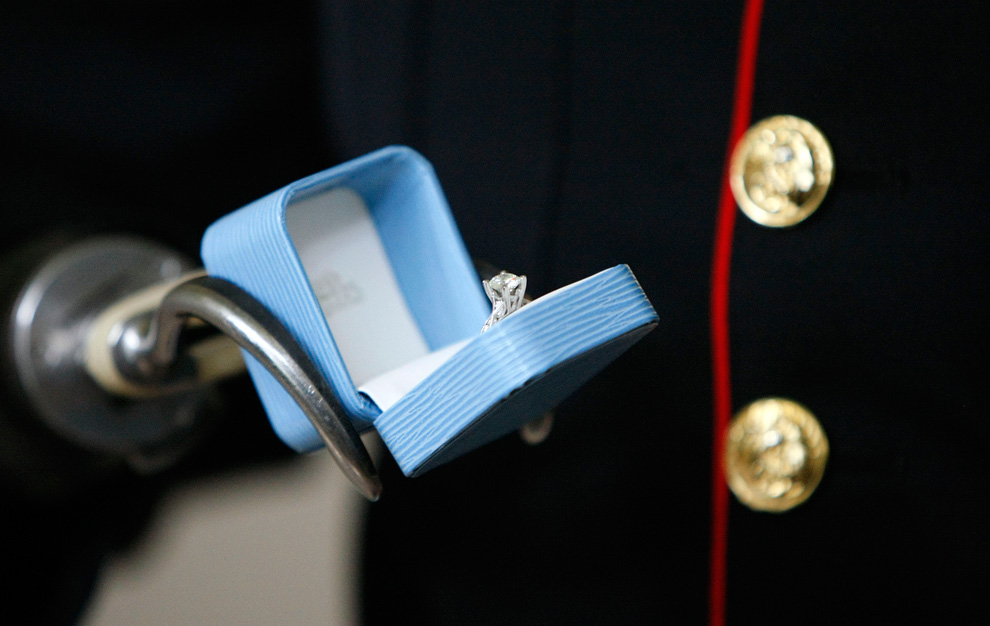 25. Сержант Джеймс «Эдди» Райт держит обручальное кольцо перед тем, как сделать предложение своей девушке Коди Файф 12 июля на церемонии, на которой Райту подарили дом, в Конро, штат Техас. (AP Photo/Houston Chronicle, Johnny Hanson)