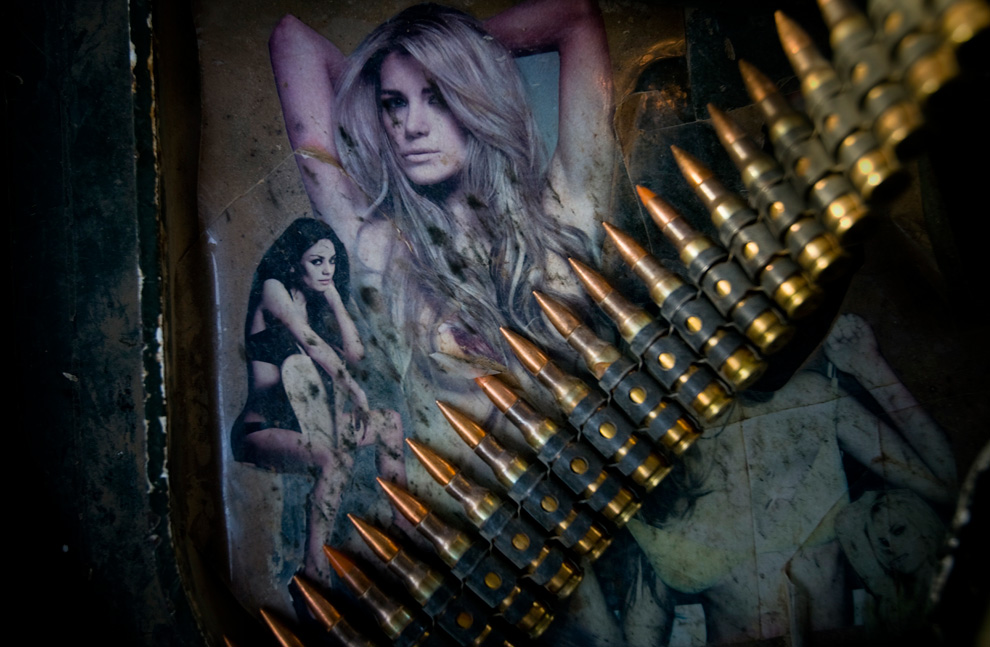 23. Пулеметная лента на женских фотографиях в бронетранспортере Stryker 11 июня, к северу от Джалула, провинция Даяла. (Warrick Page/Getty Images)