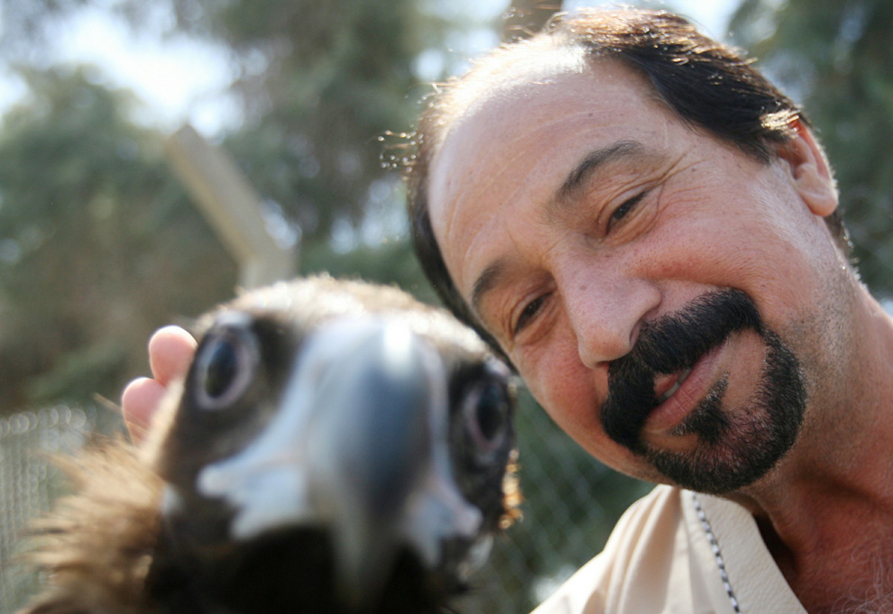 18. Бывший иракский солдат Сабах Алазави, теперь занимающийся торговлей животными, позирует с орлом на своей ферме, расположенной на улице Машатель в Багдаде 28 июня. Здесь он продает и показывает своих животных, включая волков, львов, обезьян, крокодилов и даже медведей. (ALI AL-SAADI/AFP/Getty Images)