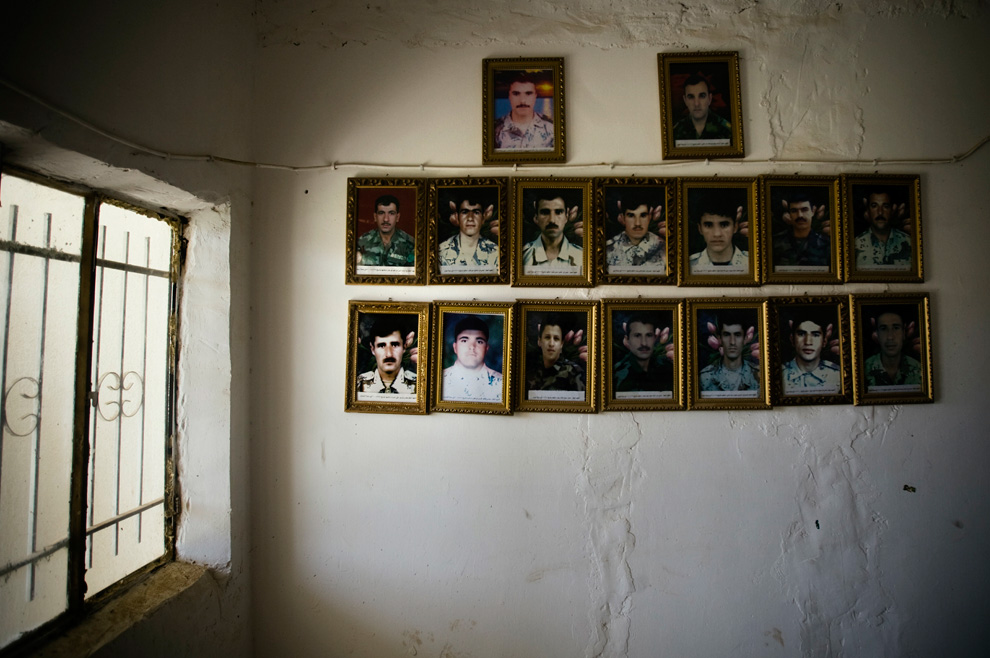 17. Фотографии погибших иракских солдат висят у входа на иракскую военную базу 2 июня недалеко от Аль Гувайра. (Warrick Page/Getty Images)