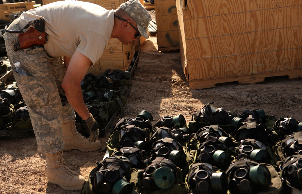 15. Американский военный считает противогазы во время подготовки своего отряда к отправке из Багдада в США. (AP Photo/Maya Alleruzzo)