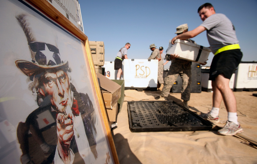 14. Плакат с дядей Сэмом – одна из вещей, которые солдаты из 49-ой военизированной бригады пакуют, чтобы отправить домой, 18 июля, в Багдаде. Солдаты из Калифорнии скоро отправятся домой после десяти месяцев службы в Ираке. (AP Photo/Maya Alleruzzo)