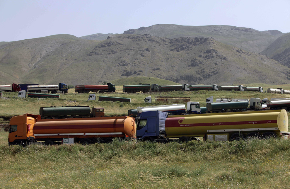 12. Топливозаправщики с нефтью едут через горный курдский городок Хаж Омран на границе с Ираном 7 июня. Ежедневная контрабанда десятков тысяч галлонов неочищенной нефти и переработанного топлива из северного Ирана в Ирак, идущая в разрез с новыми штрафными санкциями, наложенными США, лишь усугубляет напряжение между центральным правительством Ирака и его курдскими оппозиционерами. (AP Photo/Yahya Ahmed)