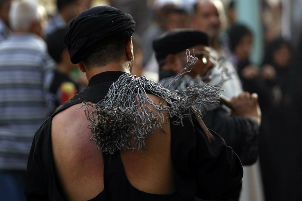 10. Шиитские мусульмане занимаются самобичеванием, собравшись у мечети имама Муса аль-Кадхима в районе Кадхимия 7 июля в память о смерти имама, жившего в восьмом веке. (AHMAD AL-RUBAYE/AFP/Getty Images)