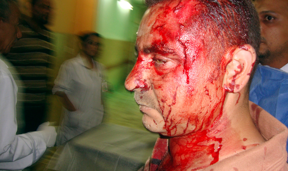 7. Мужчина, раненный в результате теракта, истекает кровью в ожидании помощи в больнице Багдада 20 июня. Террористы-смертники на автомобилях атаковали здание Банка Ирака, в результате чего погибли 26 человек, и еще 53 получили ранения. Банк Ирака - один из самых активных финансовых учреждений в стране, пропагандирующих иностранные вложения в Ирак. (REUTERS/Stringer)