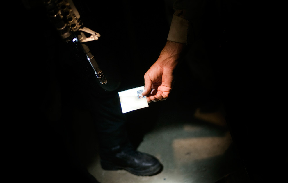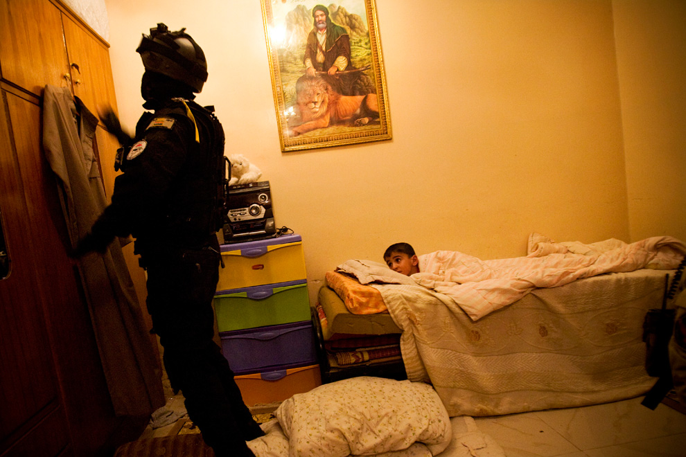 4. Иракский мальчик смотрит, как член группы быстрого реагирования производит обыск в его доме после того, как отец мальчика был арестован по подозрению в изготовлении самодельных взрывных устройств. Снимок сделан 27 мая на окраине Багдада. Спецназ США несколько лет проводил специальную подготовку иракских военных, в ходе которой особый акцент делался на сбор доказательств и на соблюдение юридических и общечеловеческих прав подозреваемых при аресте. Военные из подобных подразделений получают чуть больше 700 долларов в месяц. При этом им приходится тщательно скрывать свою личность, так как многие из них родом из неспокойных районов, в которых активно действуют боевики. (Warrick Page/Getty Images)