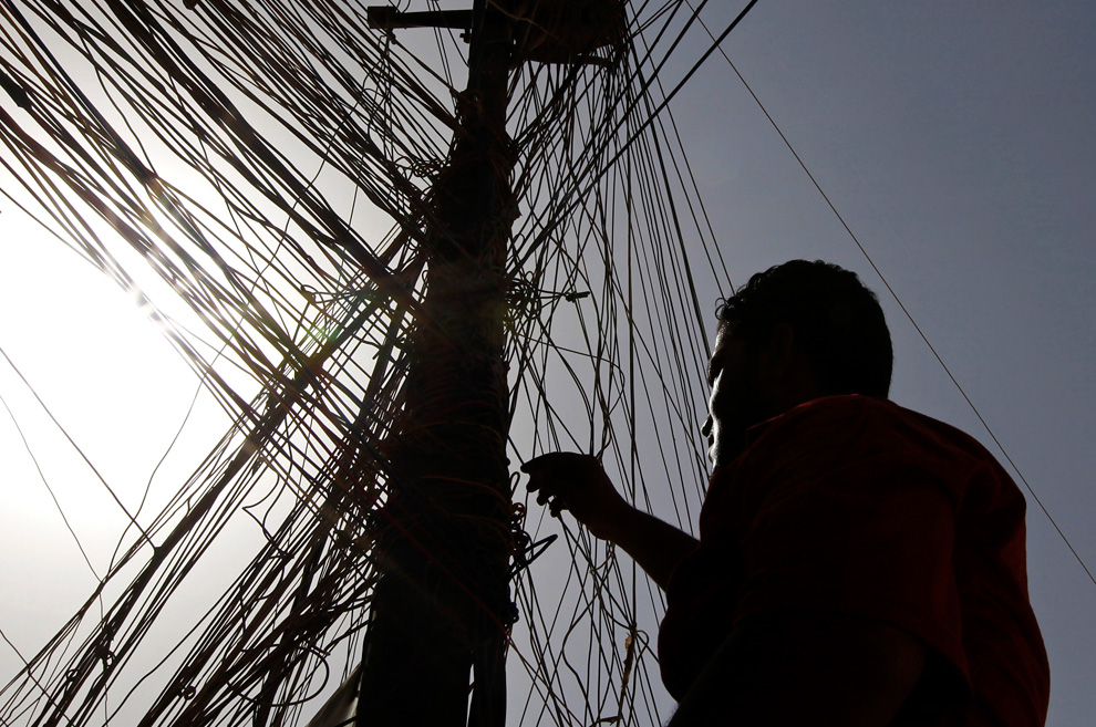 3. Аббас Ахмед осматривает сеть проводов генератора во время отключения электричества в Багдаде 25 июня. (AP Photo/Hadi Mizban)