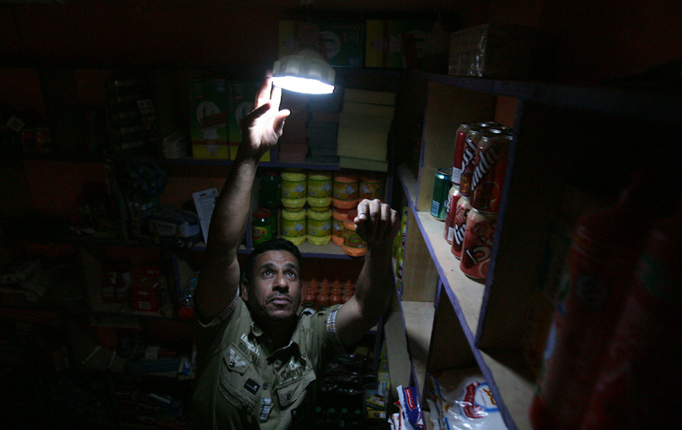 2. Иракский торговец вешает фонарь на аккумуляторах, чтобы осветить свой магазин во время отключения электроэнергии в Багдаде 30 июня. Частные компании, предоставляющие электричество в Багдаде, пользуясь дефицитом электроэнергии и удушающей летней жарой, продают электричество по цене в четыре раза дороже установленной законом цены. При этом государственные энергетические предприятия пребывают в упадке и разворовываются. (ALI AL-SAADI/AFP/Getty Images)